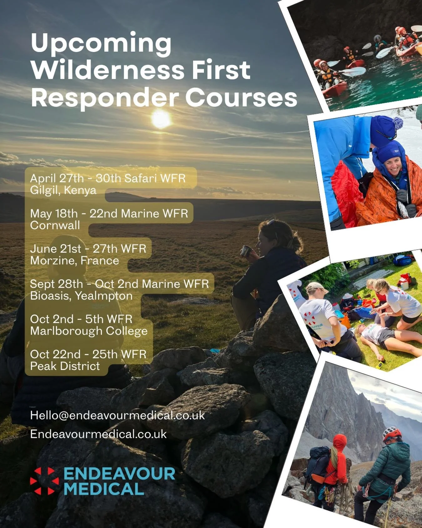 The Wilderness First Responder (WFR) course from Endeavour Medical is an intensive and very practical course delivered over 6 days, with two of those days being remote pre-course learning completed in your own time. It is aimed at outdoor specialists such as guides and instructors, mountain and expedition leaders, and other outdoor professionals, as well as medical practitioners with an interest in developing the knowledge and skills to deal with medical emergencies that occur in remote and wilderness settings.
