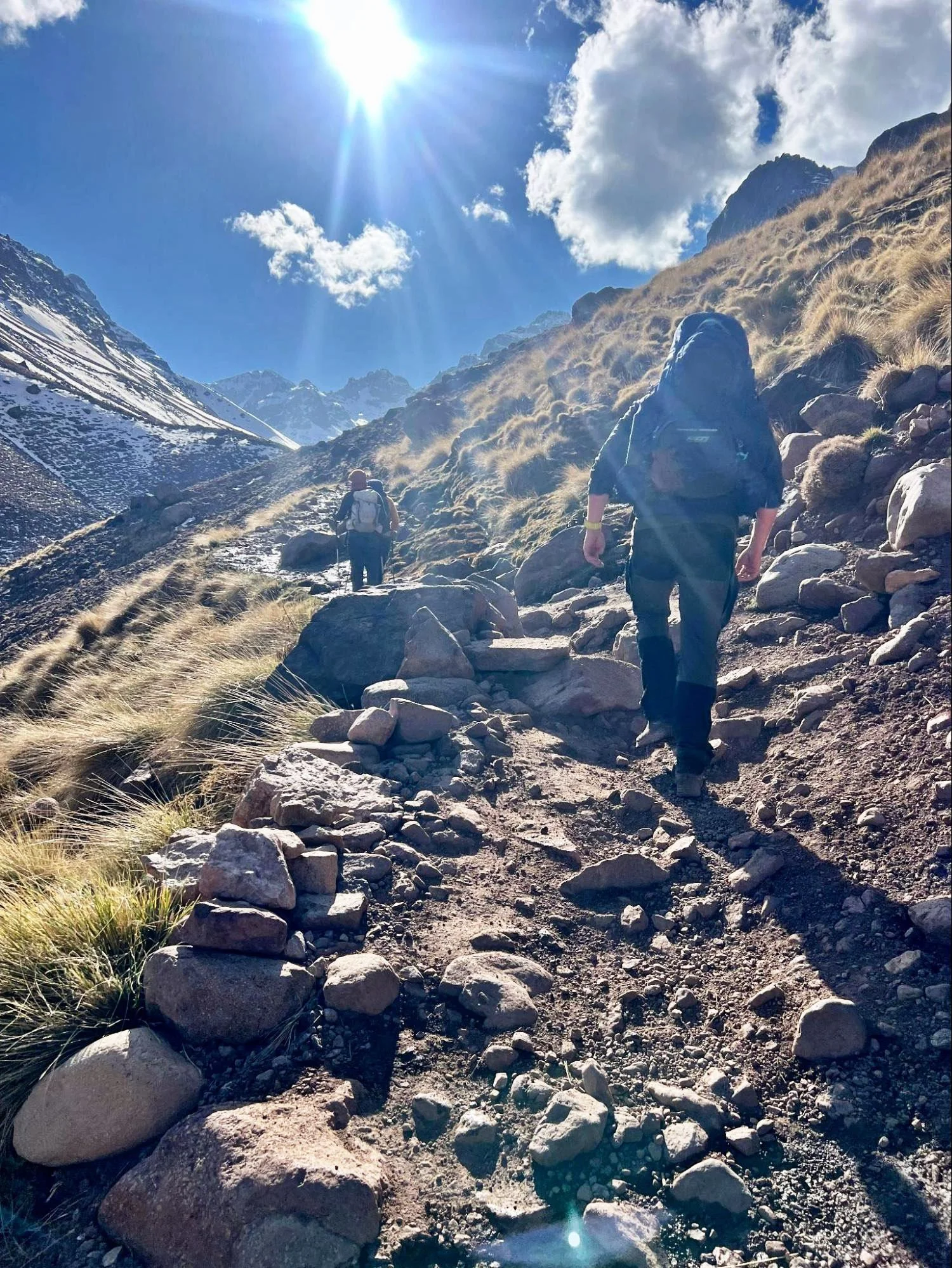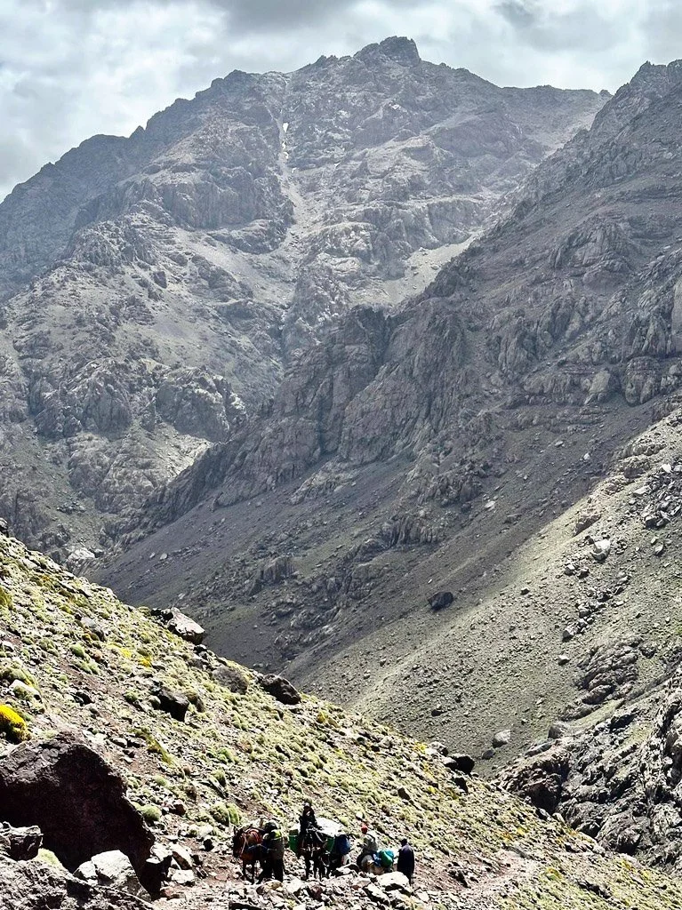 Trekking and teaching in the Atlas Mountains with views of Mount Toubkal.
